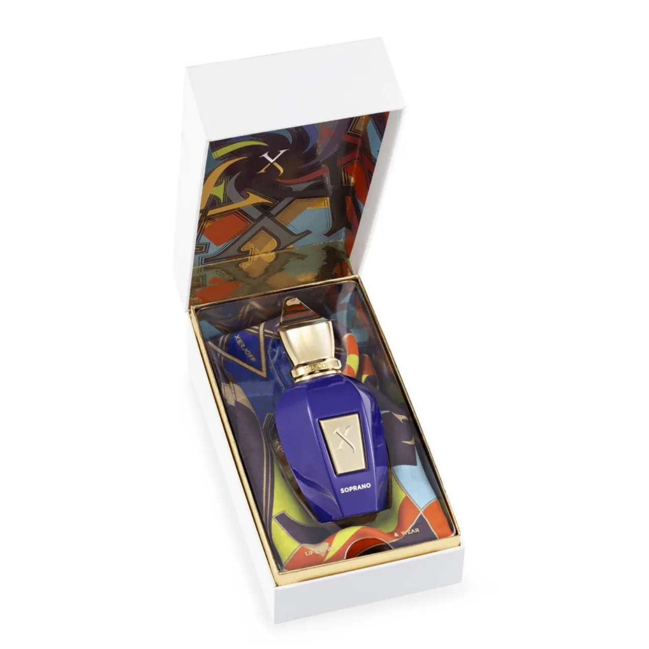 Soprano appartiene alla Vibe Collection, dotata di un rivestimento elegante e vivace e racchiusa in una confezione altrettanto accattivante realizzata con materiali sostenibili completamente riciclabili e presentata con una sciarpa in seta disegnata da Xerjoff e prodotta sul Lago di Como, la capitale italiana della seta.